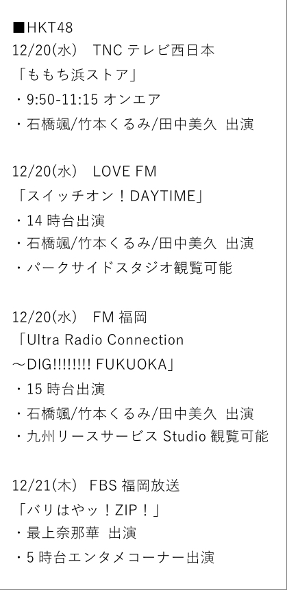 【お知らせ】HKT48 宣伝スケジュール