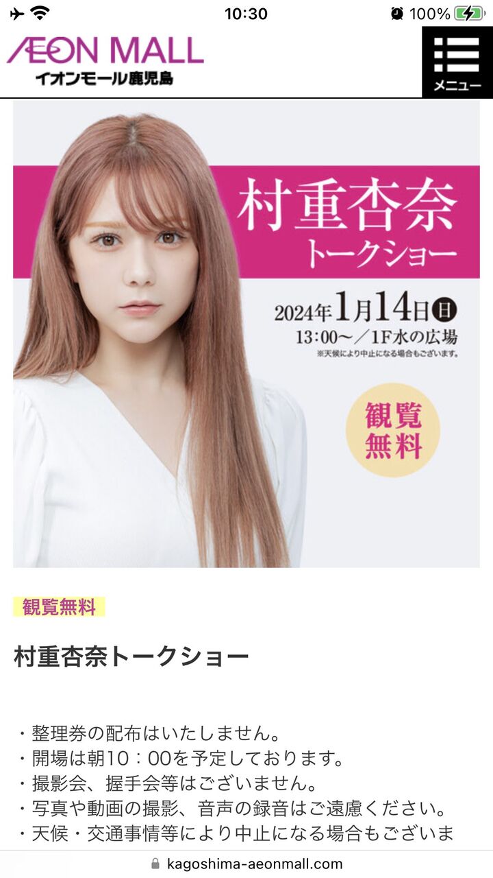 【村重杏奈】イオンモール鹿児島でトークショー!
