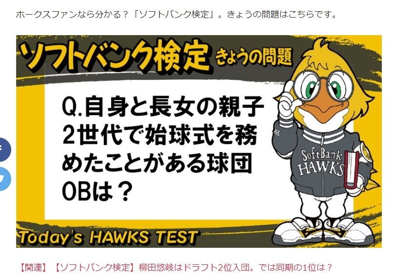 【お知らせ】本日のホークス検定が若ちゃん