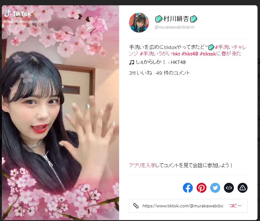 【村川緋杏】手洗いを広めにtiktok しぇからしか