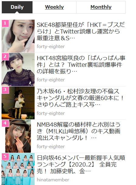 【伝説】宮脇咲良の「ぱんっぱん事件」、都築里佳の誤爆の件で大手メディアサイトのランキング2位に浮上